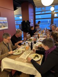 | | Grünkohlessen ist für uns bereits zur Tradition geworden. Immer zu Jahresbeginn gehen alle Wohnenden und alle Mitarbeitenden vom Hof Meyerwiede gemeinsam Kohlessen. Für viele ist es ein Highlight, dem bereits Tage vorher entgegengefiebert wird. Zum ersten Mal sind wir in Achim-Baden in den Weserterassen eingekehrt und haben es uns mit einem fantastischen Blick auf die Weser, „Grünkohl satt“ und einer großen Portion Eis mit roter Grütze gut gehen lassen. Die Stimmung war fabelhaft, so dass auch der gesteigerte und nicht eingeplante Schwierigkeitsgrad des „Buffets“ diesem Abend keinen Abbruch getan hat. Wir freuen uns schon aufs kommende Jahr! |